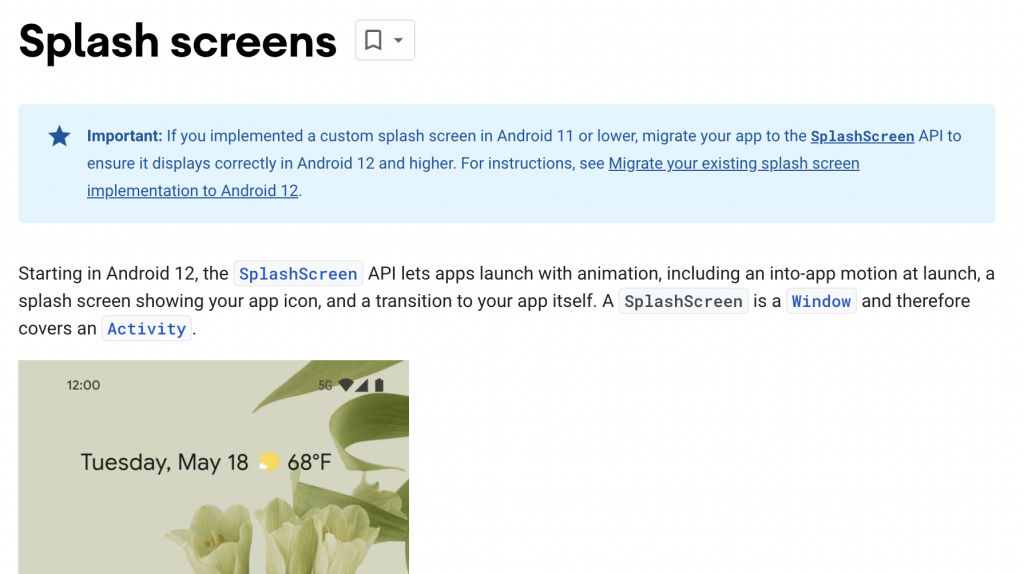 https://developer.android.com/develop/ui/views/launch/splash-screen