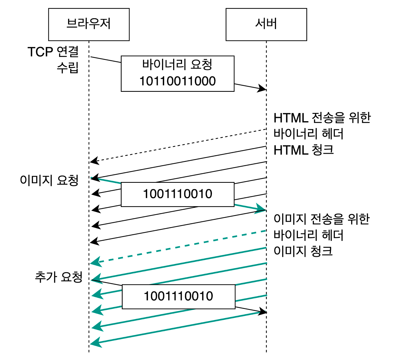 Q: 여기서 binary 값이 의미하는것은? 그리고 추가 요청에서 binary 값이 바뀌지 않는 이유?