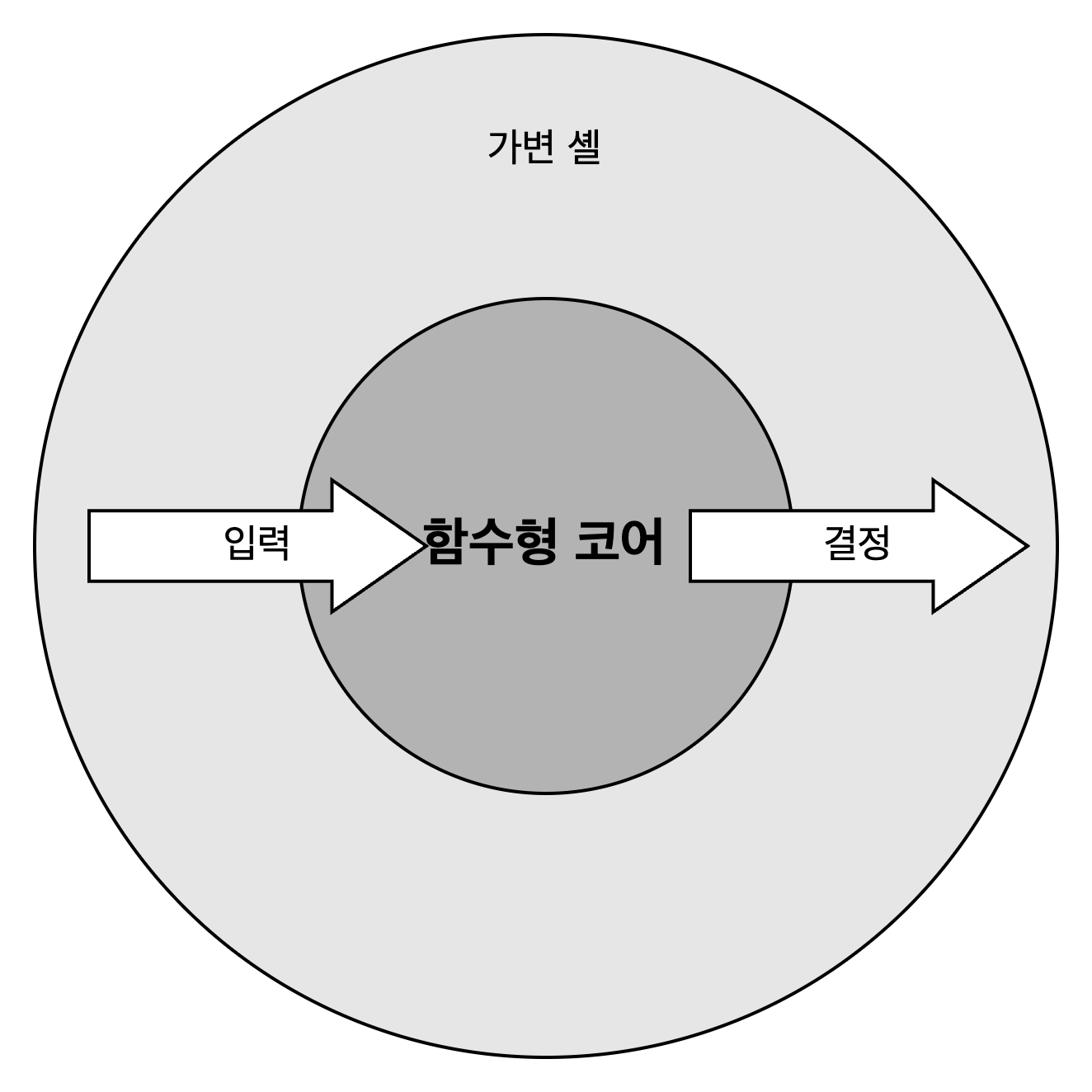 해당 결정에 따라 작용하는 코드는 가변 셸(mutable shell)이다.