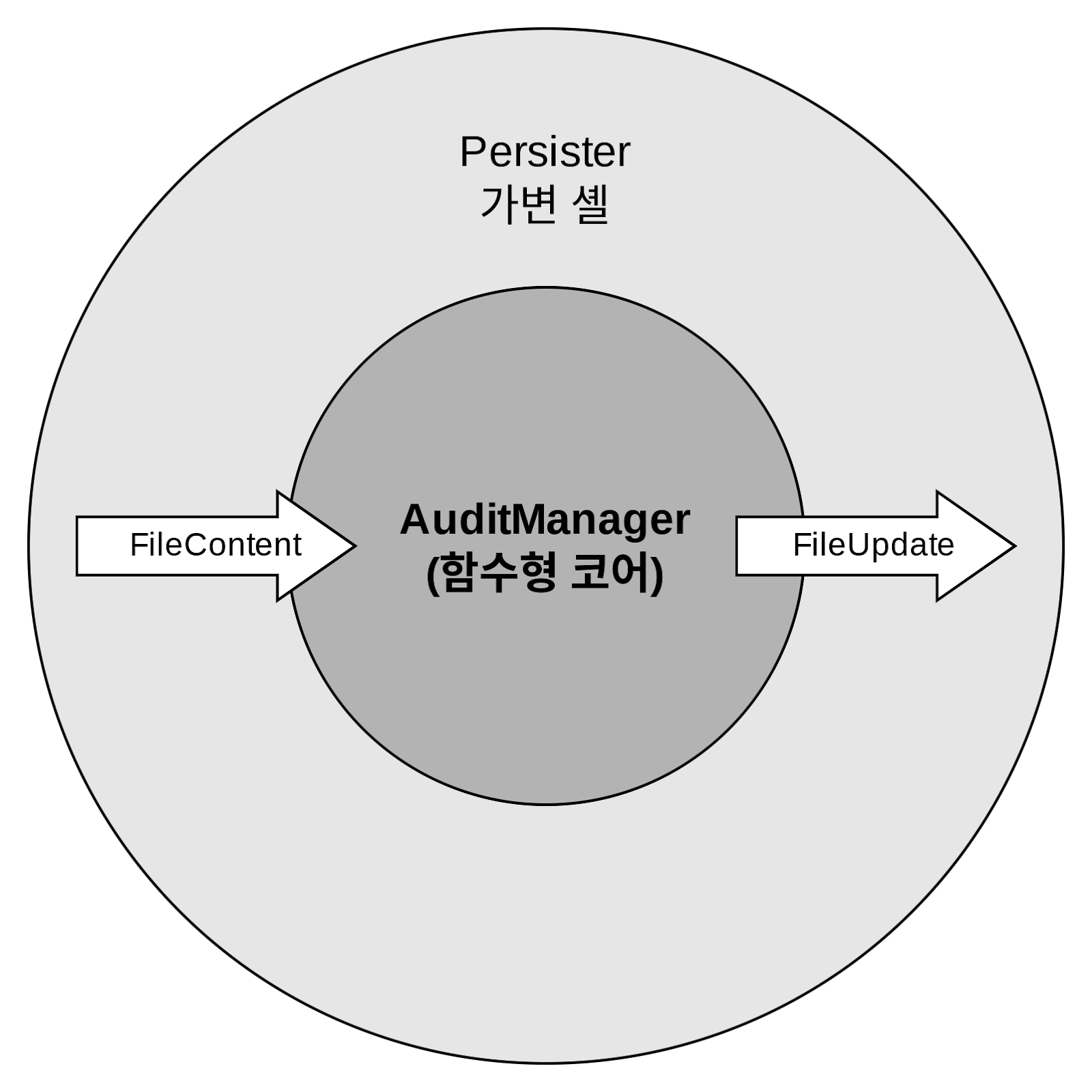 인터페이스 뒤로 사이드 이펙트를 숨기고 해당 인터페이스를 AuditManager에 주입하는 대신, 사이드 이펙트를 클래스 외부로 완전히 이동할 수 있다. 그러면 AuditManager는 파일에 수행할 작업을 둘러싼 결정만 책임지게 된다. 새로운 클래스인 Persister는 그 결정에 따라 파일 시스템에 업데이트를 적용한다.