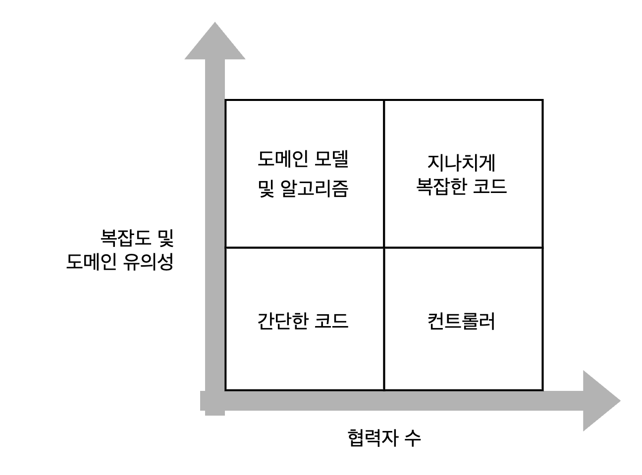 코드 복잡도, 도메인 유의성, 협력자 수의 조합으로 만들 수 있는 코드 유형은