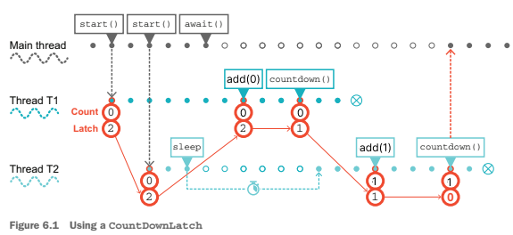 생성 된 이후 countDown 과 await 라는 두 가지 메서드를 사용하여 래치를 제어합니다.